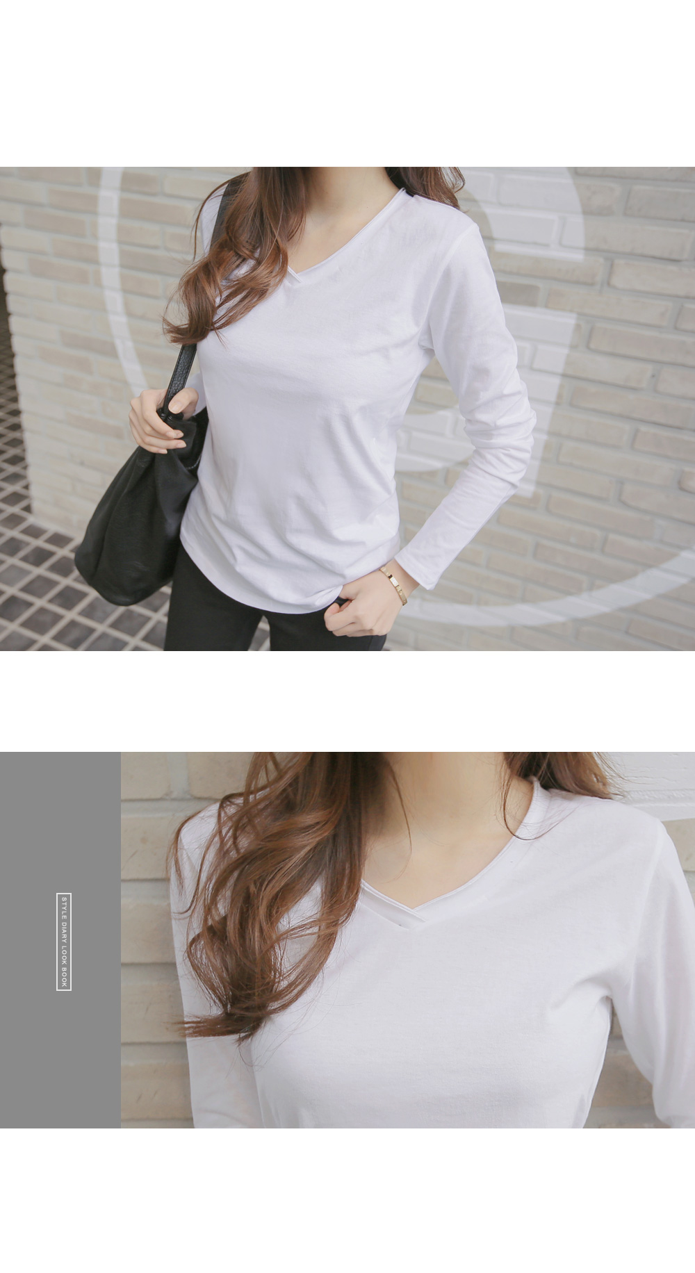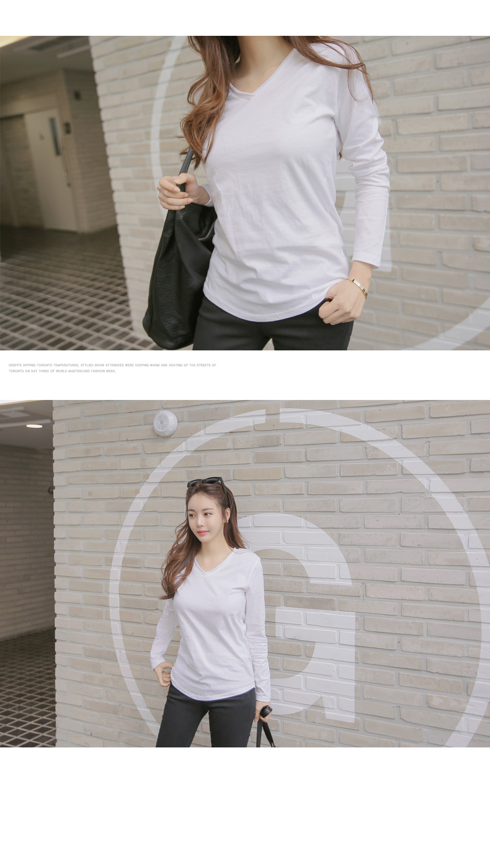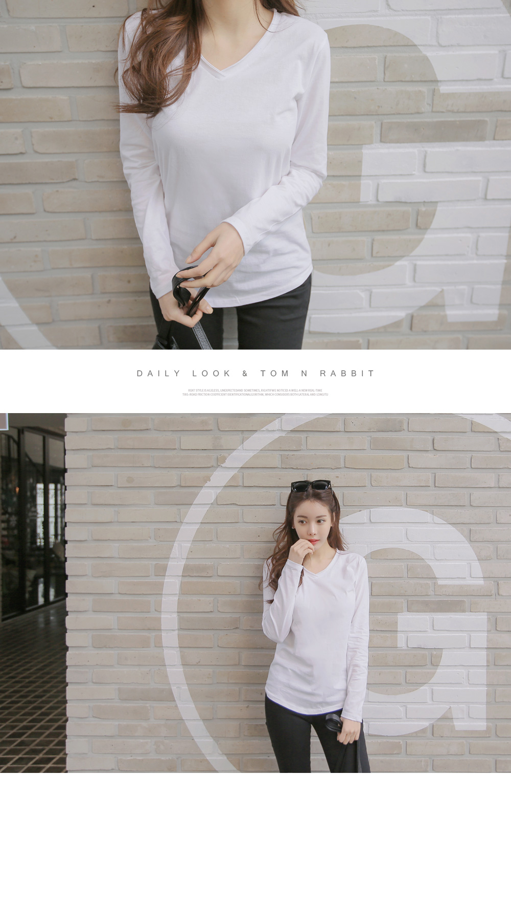 베이직한 무드의 긴팔 브이넥 티셔츠를 소개합니다 :)