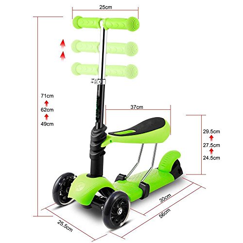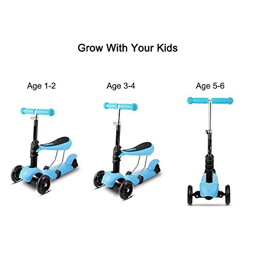 -. Feature : Premium Material: Made of high-quality Iron and plastic, durable wheels, lightweight and sturdy, easy to carry and play / Adjustable height handle, simple operation, easy to control / Amazing wheels with light up led lights, design with 3 PU wheels, more stable for your kids. Give your kid a fun and safe scooter experience / Handlebar with soft rubber hand grips, easy to control, won't feel uncomfortable even play a long time / Recommend age: 3-10 years children, the best gift for your kids