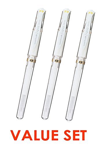 Uni Ball Signo Gel Ink Pens -Medium Point 1.0mm-White Ink-value Set of 3 (with Values Japan Original Discription of Goods)
