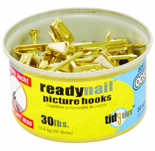 OOK by Hillman 50611 ReadyNail Conventional Picture Hangers Tidy Tin, Brass, Supports Up to 30 Pounds, 25 sets