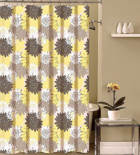 Decorative Floral Fabric Shower Curtain: Brown Taupe Yellow White Large Print Flowers