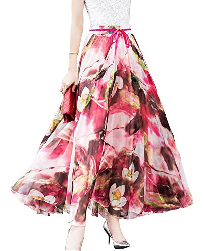 -. Title : ELPIS レディース レトロ エレガント きれいめ 大判 花柄 フラワー プリント シフォン マキシ丈 ギャザー フレア スカート ウエスト ゴム カラフル 6色 M L XL