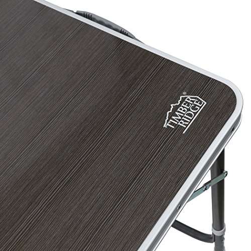 Studio : Westfield Outdoors Publisher : Westfield Outdoors Binding : Sports Product Description Product description: Timber Ridge camping table is the perfect choice for both indoor and outdoor activities. Featuring an aluminum tube frame, heat insulating tabletop, two aluminum support legs between table legs and non-skid rubber feet on all four legs. The table legs can be adjusted to two height position according to your using demand. Children will like it because they can get their wants in suitable height, too. So it is not only used in camping, hiking, backyard barbecue, but also used in in room. It rolls up and unfold in seconds and material can be clean up easily. The collapse table will bring you a convenient and enjoyable experience in your activities. Technical specification: unfolded size: 47.2 x 23.6 x 27.2 inch package size: 25.8 x 3.7 x 25.4 inch panel: medium density fiber board frame: aluminum frame colors available: Black package weight: 11.88lbs cleaning and maintenance: 1. Do not leave in the elements, as the metal parts may rust. 2. Check stability regularly. Screws may loosen and need to be tightened. About Timber Ridge: Timber Ridge is a professional outdoor brand which devotes to provide best outdoor experience for customers. Our products cover different fields on outdoor activities including bags, tents, wagons etc. All the products are subject to multiple strict quality tests on different extreme environments before entering market. 0