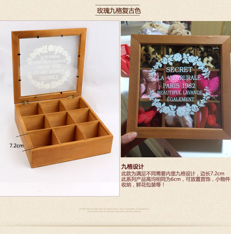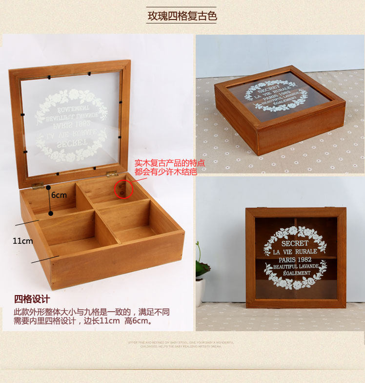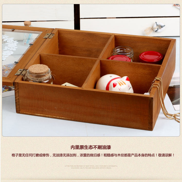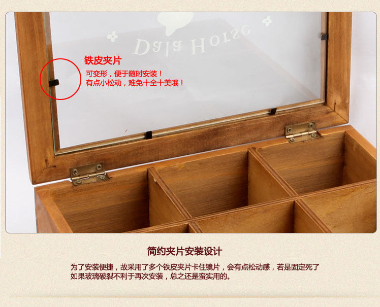 宝贝材质:玻璃盖;整体实木;底板和分格为三合板。
