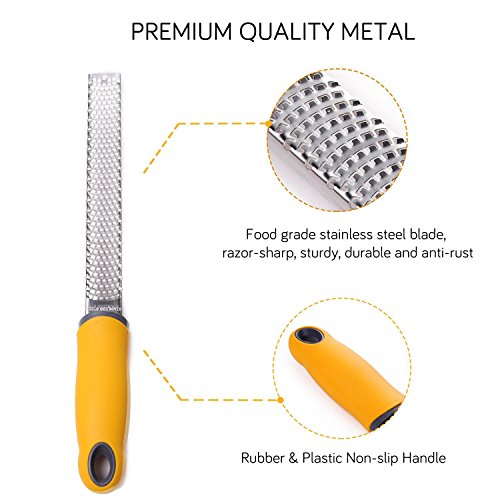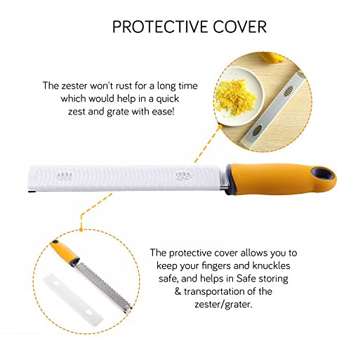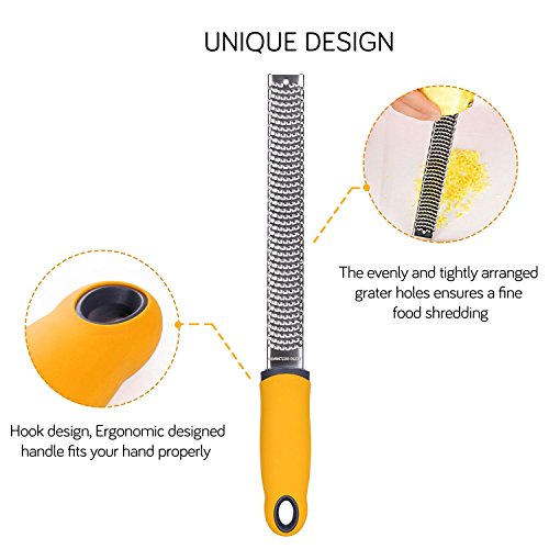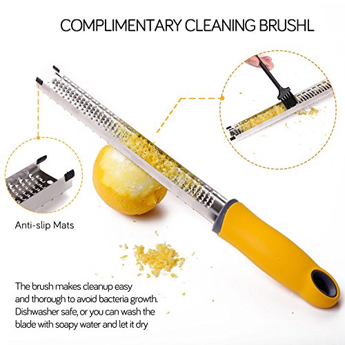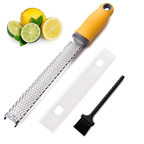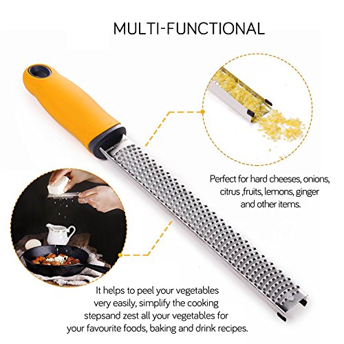 100% Brand New and High quality from Go-Sports With unsurpassed performance value - you can enjoy peace of mind about your purchase as well as the things you love. The most time-consuming part of cooking recipes that require zest is carefully peeling off the white pith inside the peel. Pith is very bitter and can ruin your recipe. Unlike an old fashioned peeler, the Go-Sports Zester gives you zest in 30 seconds - and doesn't even touch the pith! You end up with perfect tiny zest curls. Discover great tastes in famous dishes by adding freshly grated spice like ginger. Get your professional Go-Sports Zester today! The brush handle is made of food grade PP resin and is equipped with environmental protection nylon brush head, which can clean the food residue on the zester at any time. Advantage: 1.High-quality stainless steel that won't rust 2.Non-Slip Soft Handle for Easy Gripping 3.Razor Sharp, Safe and Durable Edges 4.Plastic Protective Cover for Safety Storage and Easy Hand-Washing 5.Easy to Clean Dishwasher Safe Application: The Zester-Grater's sharp grating edges allows you to zest and grate almost anything - coconut, potato, cabbage, apple, lemon, lime, orange, onion, papaya, nutmeg, cinnamon, garlic, carrot, chocolate, etc. The Best Tool That Helps You Easily Grate Zest Anything Overall Demension: Packing size: 12.9(L)*1.4(W)*1.6(H) inches Item size: 12.9(L)*1.3(W) inches Package Included: 1 x Zester 1 x Cleaning brush 1 x Plastic cover 0 |