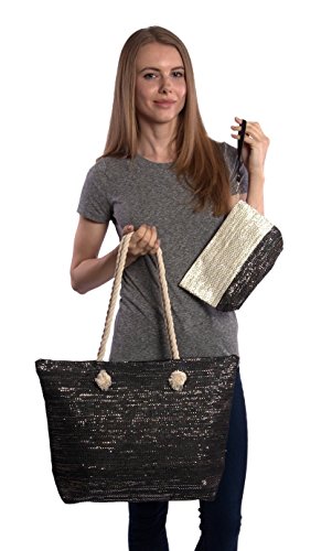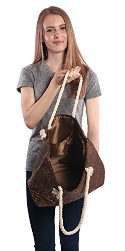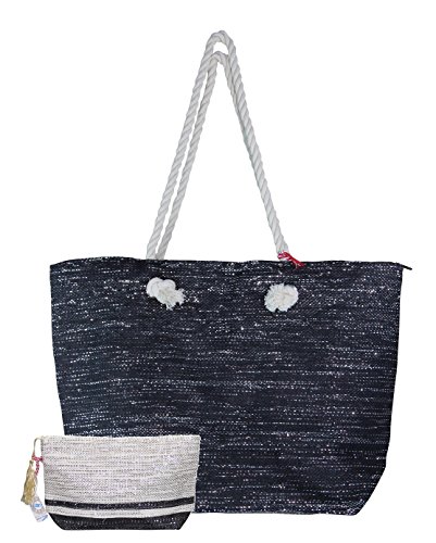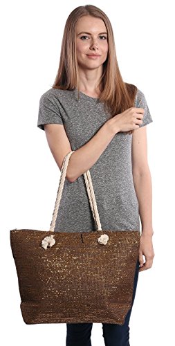 -. Brand : Pier 17 -. Color : Multi -. Department : womens -. Feature : Dimensions Tote: 19 in x 14 in x 5.5 in Pouch: 6 in x 10 in x 2.5 in / Rope handles / Four Fun Summer Metallic Colors / 9" shoulder drop / Matching inner lining, inner slip poker with zipper top -. Model : 8400 -. PackageQuantity : 1 -. ProductGroup : Apparel -. ProductTypeName : LAGE -. Size : One Size -. Title : Metallic Fashion Beach Bag Tote with Zipper Top, Rope Handles, and Matching Pouch