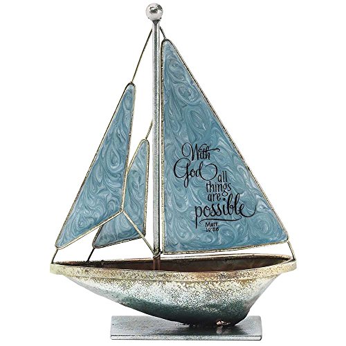 With God All Things Possible Matthew 19:26 6 x 5 Metal Table Top Sailboat Figurine Decoration