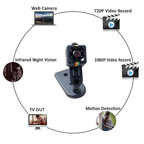 【HD 1080P】 Super mini camera with 1080P/720P resolutions, compact square design volume about 0.65 cu in, high quality image and fits for all kinds of portable tools, holder and clip could soled the mini DV, the sling port convenient for hanging on your neck or hand.