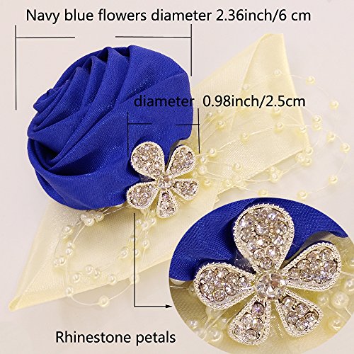 Arlai 1 pcs Wedding Bridesmaid Bride Wrist Corsage Decoration Hand Flower, Dark blue