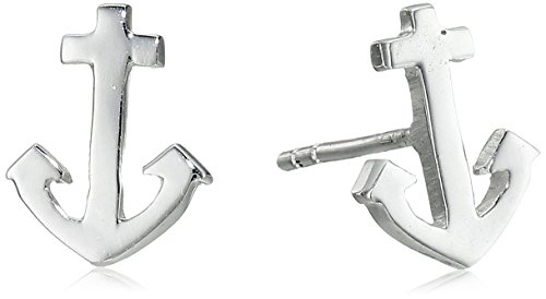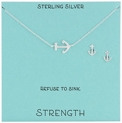 Sterling silver jewelry set featuring mini anchor stud earrings and coordinating pendant necklace