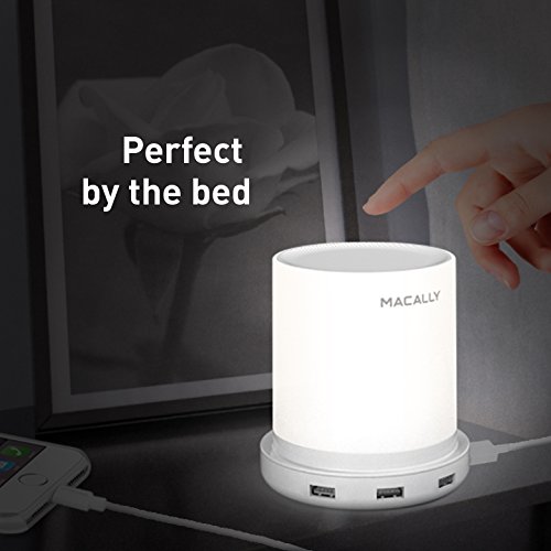Macally LED Desk, Bedside & Nightstand Table Lamp with 4 High Powered USB Charging Ports | 3 Level Brightness Touch Sensor Control | Dimmable Warm White Light (LAMPCHARGE)