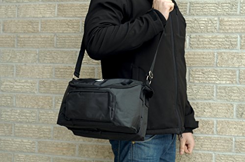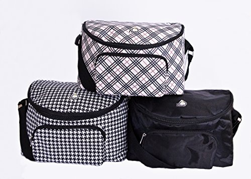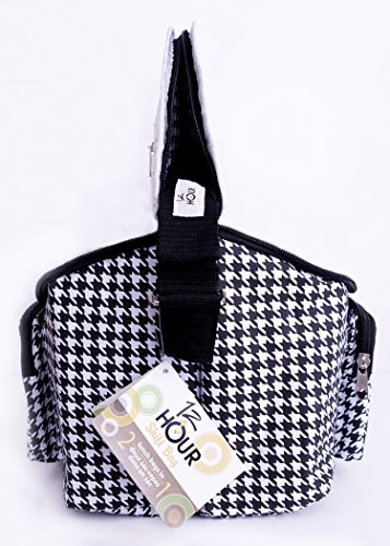 -. Feature : Unique 2-sided classic black houndstooth design is insulated on both sides; 1 inner mesh pouch; 2 outer pouches / Side 1: thermos & hot foods; break-time snack 1; baby bottles & ice pack; reading book & glasses, DIY tools / Side 2: Drinks & Cold Foods; Main Meal ; Cereal, bib, spoon & dry snacks; pens, pencils & notepad / Easy-clean 70D PVC Nylon outer shell & inner liner; fully insulated with insulated dividing wall / Unisex; Machine wash, hang dry; Dims: W12 x L9 x H9 ins