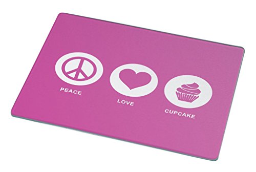Rikki Knight Peace Love Cupcake Rose Pink Color Large Glass Cutting Board