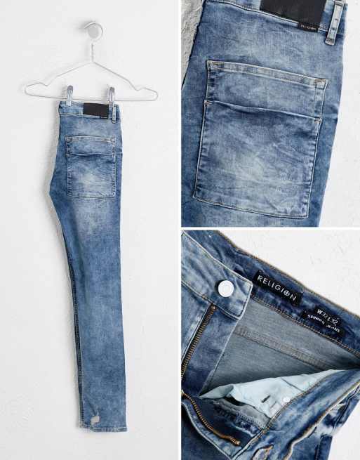 Religion skinny fit jean with stretch and bleached hem
