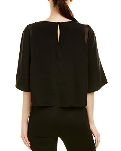 Studio : Halston Heritage Women's Collection Publisher : Halston Heritage Women's Collection Binding : Apparel Product Description Cute shorter length top in silk viscose faille, slightly loose bell sleeves, tulle chain piping detail around the neck, and sheer georgette inserts at the back side panels. 0