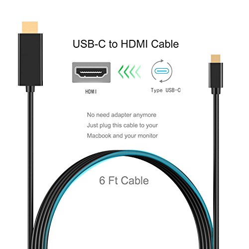 USB C To HDMI(5.9ft/1.8m),USB 3.1(Thunderbolt 3 Compatible) Type C Male to HDMI Male 4K Cable for 2016 MacBook Pro, ChromeBook Pixel, 2015 MacBook Huawei MateBook & More