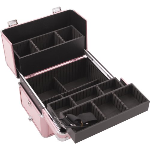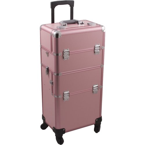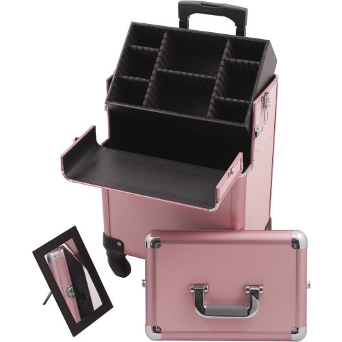HIKER Makeup Rolling Case HK6501 2 in 1 Hair Stylist Orgainzer, 3 Slide and 1 Removable Tray, 4 Wheel Spinner, Locking with Mirror, Extra Lid and...