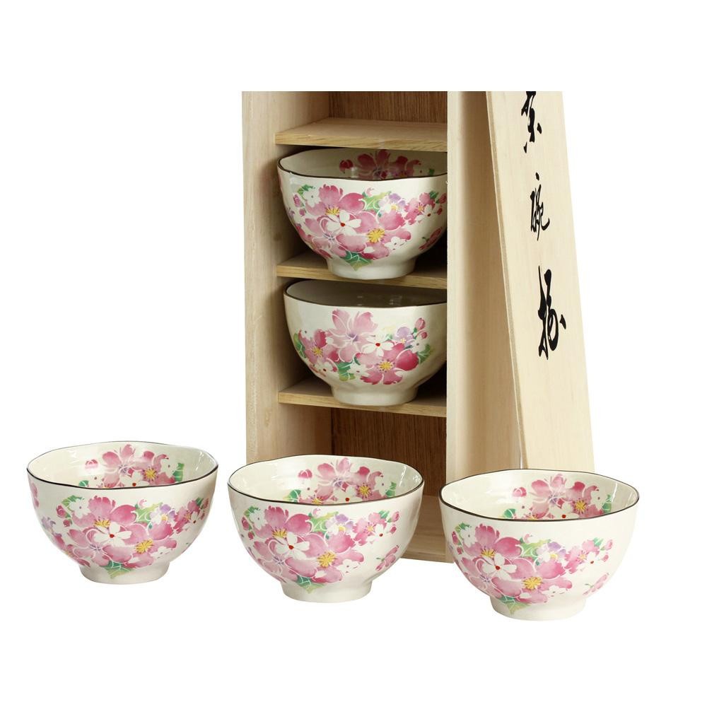 春を彩る桜を鮮やかに描いています。飯碗5客を木箱に入れたセットです。