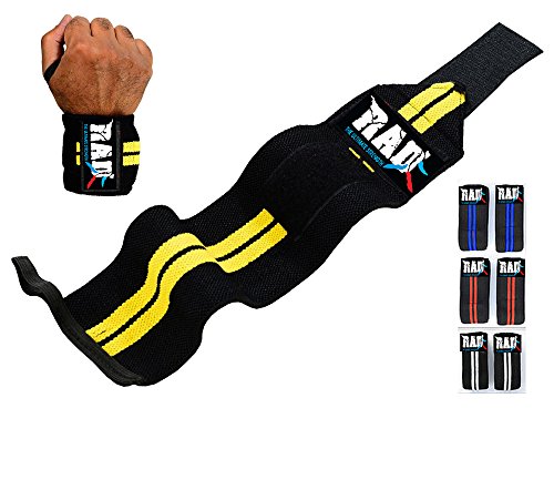 Studio : Rad International Inc. Publisher : Rad International Inc. Binding : Misc. Product Description Train with enduring sports brand RAD Wrist Wraps are a combination of the best in comfort and durability perfectly suited for heavy lift days. These heavy duty 3" wide and 12" extended length wraps are made from cotton elastic for maximum support and thumb loops with extra length Velcro to ensure they never shift when in use. Constructed from a heavy blend cotton-eglantine for maximum support and longevity. Our wrist straps provide the ultimate in support and protection for the wrists so you can blast your way past your current boundaries you'll be amazed at the extra weights attained. One size fit all. Sold as Pair. 0