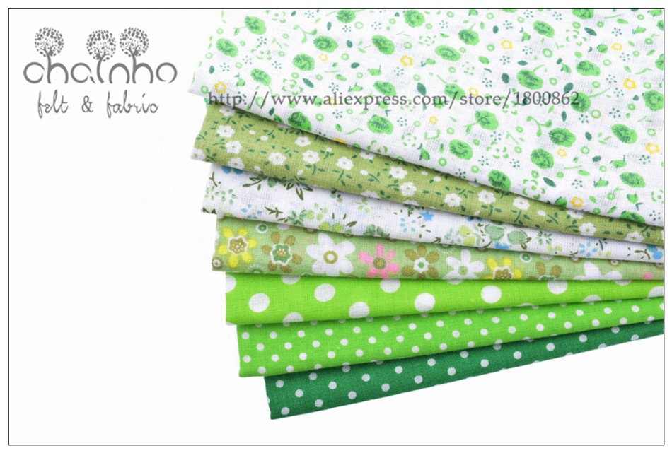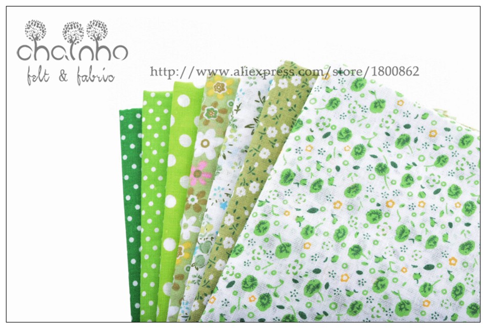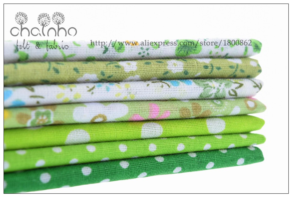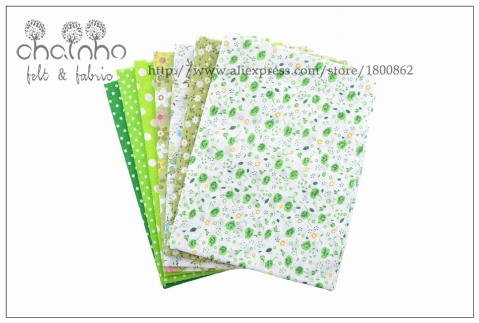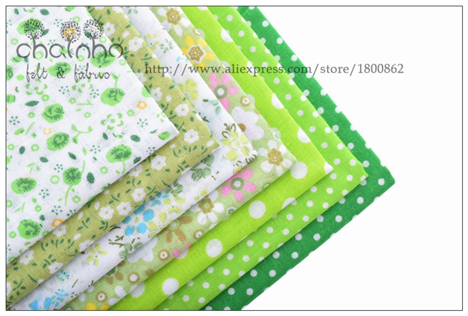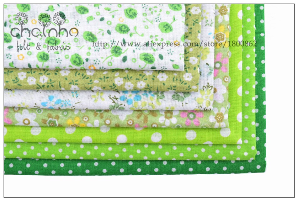 Thin Cotton Fabric Patchwork For Sewing Scrapbook Cloth Fat Quarters Tissue For Quilt Needlework Pattern 50*50cm Green 7pcs
