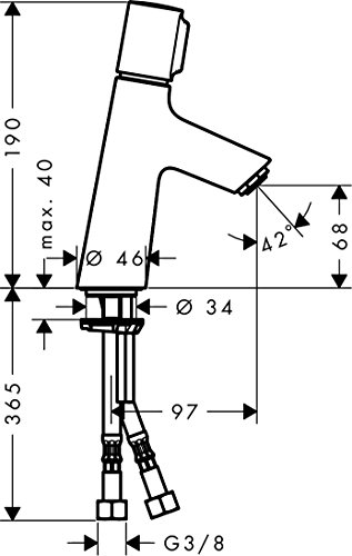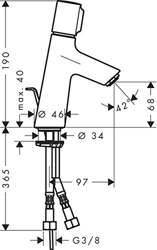 Waschtischarmatur bestehend aus: Grundkorper, Griff, Anschlussschlauchen, QuickClean Luftsprudler, Zugstangen-Ablauf, Keramikkartusche und Temperaturbegrenzer