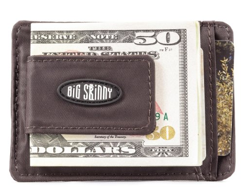 -. Binding : Sports -. Brand : Big Skinny -. Department : mens -. Feature : Strong magnetic clip can hold more than 20 folded bank notes / 3 card pockets plus ID pocket can hold more than 10 plastic cards / Pockets lined with rubbery coating to prevent cards from sliding out / Constructed of thin, light and durable nylon microfiber; machine washable / Measures 4-1/8 x 3 Inch -. Label : Big Skinny -. Manufacturer : Big Skinny -. Model : MCBR2050-P -. ProductGroup : Sports -. ProductTypeName : OUTDOOR_RECREATION_PRODUCT -. Publisher : Big Skinny -. Studio : Big Skinny -. Title : Big Skinny Men's Magnetic Money Clip Slim Wallet