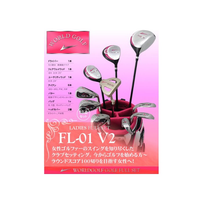 원본상품명: 【アウトレット / 保障無】ワ?ルドイ?グル FL-01★V2 レディ?ス ゴルフ クラブ フルセット 右用【ブラックベリ?】ヘッドカバ?付