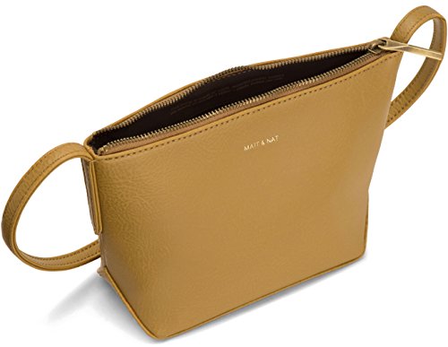 Crossbody bag with adjustable strap. Top zipper closure. Interior: zipper pocket, logo-embossed Dwell tag. 100% recycled nylon lining.