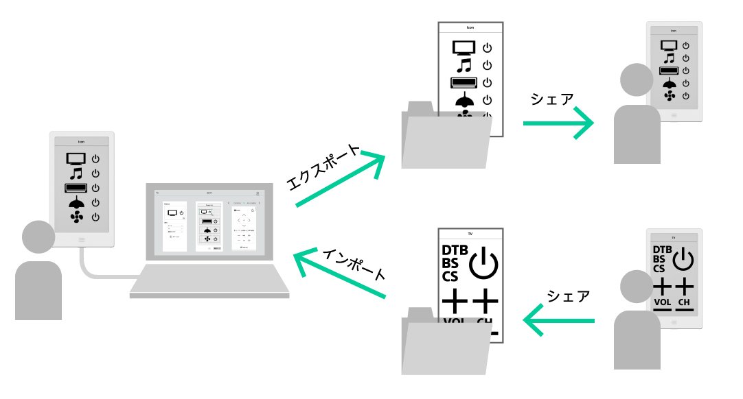 By choosing only the buttons you always use and putting them on one remote control screen, you can operate various devices from the screen all at once, so your daily life will be a bit more comfortable.