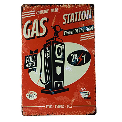 T-ray Metal Sign Vintage Retro Shabby Chic Gil Elvgren GAS Station Full Service Tin Wall Plaque