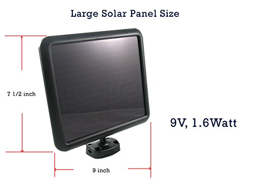 ABS, Aluminum and Glass for durable use and Amorphous 9V 1.6Watt Large Solar Panel for Anywhere mountable with 15ft long cable.
