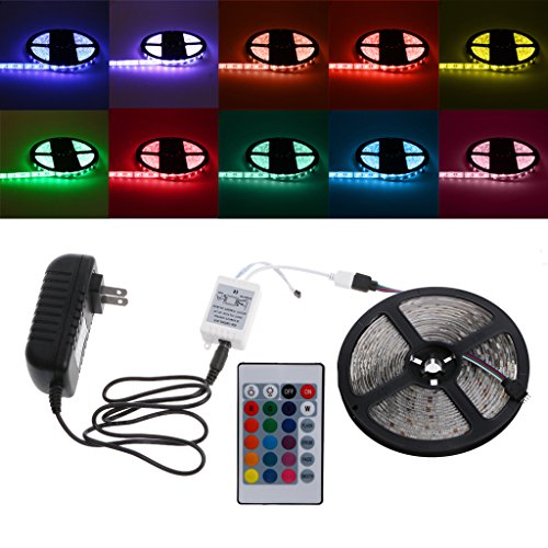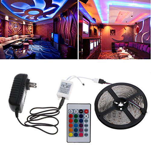 Specifications: LED Type: 5050 RGB LED Strip Protection Rate: Waterproof Length: 5m LED Type: SMD 5050 LED Quantity: 300Leds /5m, 60Leds /m LED Light Color: RGB Quantity: 5m / Roll Long life span 50,000 hours Power Supply Type: 12V 3A(36W) Power Supply Input: 100-240V AC 50/60Hz Power plug:US Back with a self-adhesive Flexible ribbon can be wrapped or bended Ultra-bright but running at low temperature RGB Controller Specifications: Type: 24 Keys IR Remote Controller Connection mode: Common Anode (+) Working Temperature: -20 ° C to + 60 ° C Control box dimension: 50mm (L) x35mm (W) x19 (H) mm Remote controller dimension: 85mm (L) x 52mm (W) x 7mm (H) Remote controller battery: 1 x CR2032 battery (included battery) Quantity: 1 Set Note: Please allow 1-3mm error due to manual measurement. pls make sure you do not mind before you bid Due to the difference between different monitors, the picture may not reflect the actual color of the item. Thank you! Package Contents: 1 x 5m 5050 RGB LED Strip 1 x 24 key Remote Controller (include CR2032 Button Battery) 1 x IR Remote Controller 1 x 12V 3A(36W)US Standard AC/DC AdapterFeature