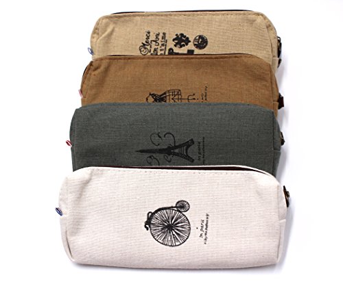 Set of 4 - Cute Pen Holder Canvas Pencil Case - Practical Cosmetic Makeup Purse - Coin Pouch for Student Multi-Fuctional Pen Pencil Holder Retro Stationery Zipper Bag(4 Colors)