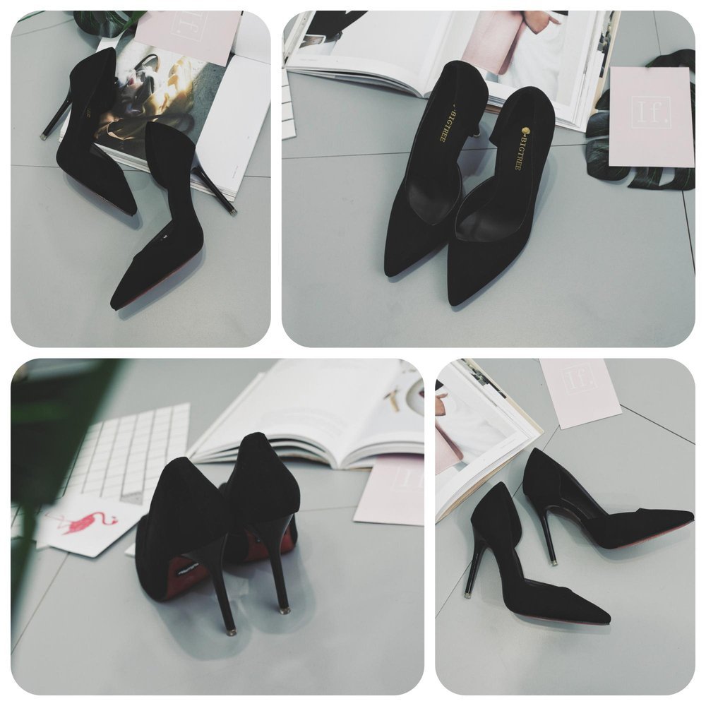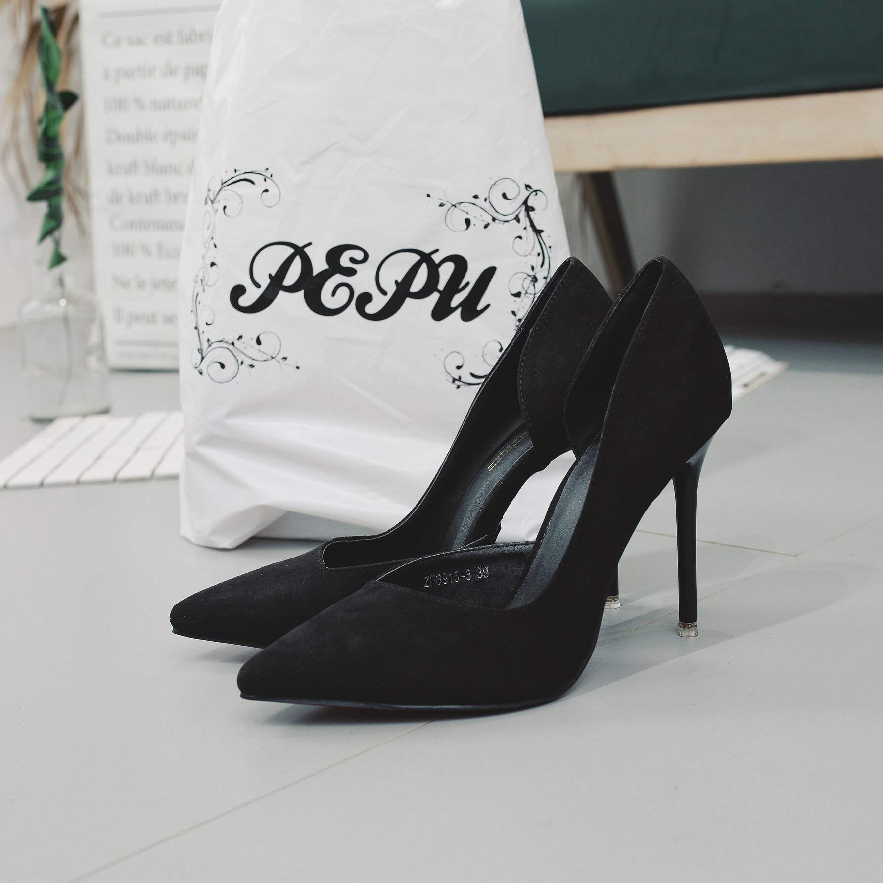 (Peppe) PEPU Side cut high heels Women's pumps Legs Height Approximately 10 cm Black Formal Pinhiel