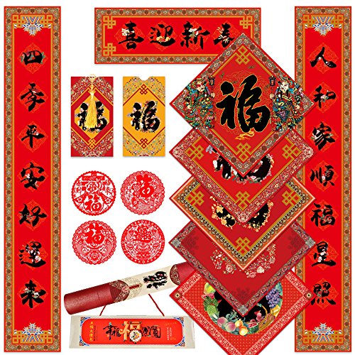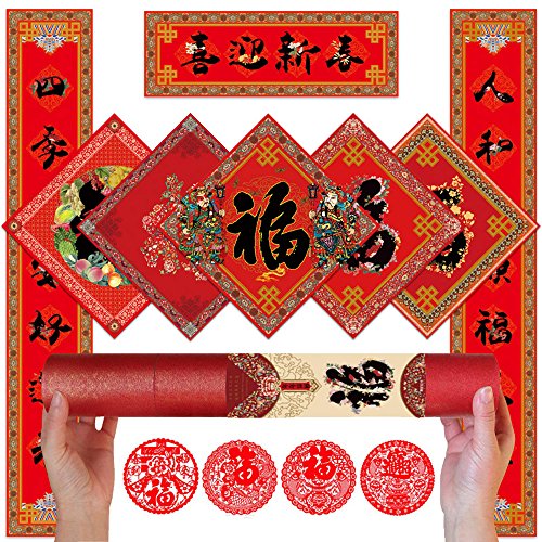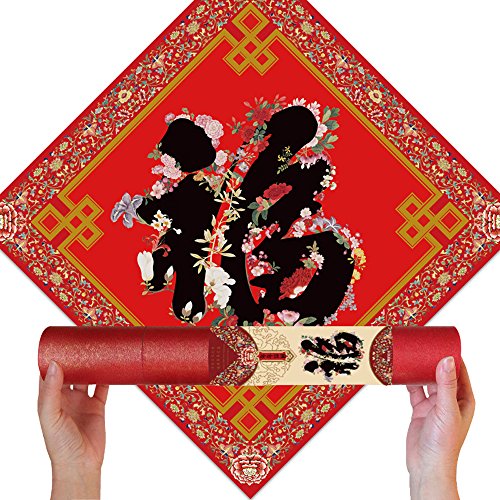 Wufu Blessings 2018 Traditional Chinese New Year Paintings and Couplets Wall Stickers Decorations Big Fu Chinese Character Card Duilian Chun Lian for Party Decor (Happy Chinese Lunar New Year)