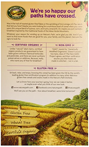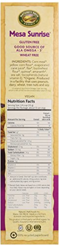 -. Binding : Grocery -. Brand : Nature's Path -. EAN : 0058449779001 -. Feature : Our unique gluten-free and wheat-free medley of ... corn, flax, and amaranth blended into crunchy, golden cereal flakes. / Organic / Gluten free / Wheat free / Low sodium / Kosher -. IsAdultProduct : 0 -. Label : Nature's Path -. LegalDisclaimer : NOTE: Actual product packaging may sometimes differ from image shown due to packaging updates & improvements by the manufacturer. We DO NOT P.R.Ice match. Tracking information/number provided upon request. We are a drop shipping company and items may come directly from the manufacturer's. We do not ship to PO BOXES. -. Manufacturer : Nature's Path -. Model : 058449779001 -. MPN : 77790 -. NumberOfItems : 6 -. PackageQuantity : 1 -. PartNumber : 77790 -. ProductGroup : Grocery -. ProductTypeName : GROCERY -. Publisher : Nature's Path -. ReleaseDate : 2007-09-24 -. Studio : Nature's Path -. Title : Nature's Path Organic Mesa Sunrise Cereal, 10.6 oz -. UPC : 058449779001