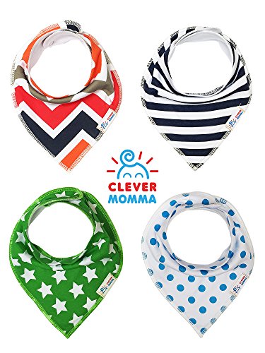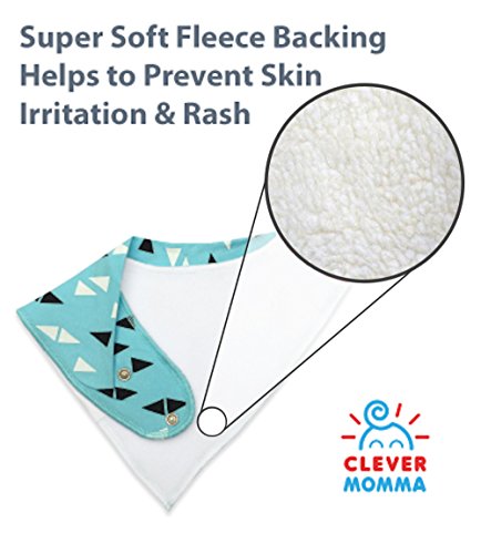 -. Binding : Baby Product -. Brand : Clever Momma -. Feature : ✔ SUPER SOFT ABSORBENT ORGANIC COTTON ✔ Our stylish bibs are soft and safe for your baby. Made from superior absorbent 100% organic cotton on the front, and soft fleece on the back for extra absorbency. Never worry about your baby experiencing painful skin rashes and irritations again. Your baby will be happily drooling in style with a Clever Momma Bib. / ✔ ADJUSTABLE NICKEL-FREE SNAPS ✔ Each bib is designed with 2 nickel-free snaps that will securely hold the bib in place. You control the sizing of the bib as your baby grows from infant to toddler. Enjoy peace in mind knowing your baby is always protected from drool and spit up. / ✔ FUNCTION MEETS FASHION ✔ You've already put so much time into your baby's outfit, don't let a bib ruin it! Our bibs are stylish and trendy and will easily pair with any outfit. Upgrade basic onesies to well planned outfits. Sit back and let your baby drool in style! / ✔ SATISFACTION GUARANTEE ✔ We founded Clever Momma to make your life easier. Our bibs are durable and made to last longer than the competitors. If you are not 100% satisfied with any of our products for any reason, simply let us know and we will make it right :) / ✔ SAVE MONEY ✔ Use PromoCode: 6N7IHYMW and Save 20% when you purchase 2 or more! Most moms tell us they regret purchasing only one pack to start! You'll quickly realize how convenient it is to have bibs on hand when you need them. Go ahead and enjoy saving money today by adding your favorite sets to your cart. -. IsAdultProduct : 0 -. Label : Clever Momma -. Manufacturer : Clever Momma -. ProductGroup : Baby Product -. ProductTypeName : BABY_PRODUCT -. Publisher : Clever Momma -. Studio : Clever Momma -. Title : Baby Bandana Bibs for Drooling and Teething, Unisex Value Packs for Boys and Girls, Organic Cotton with Snaps, Hypoallergenic, Soft and Absorbent, Burp Cloths Perfect for Spit Up, From Clever Momma
