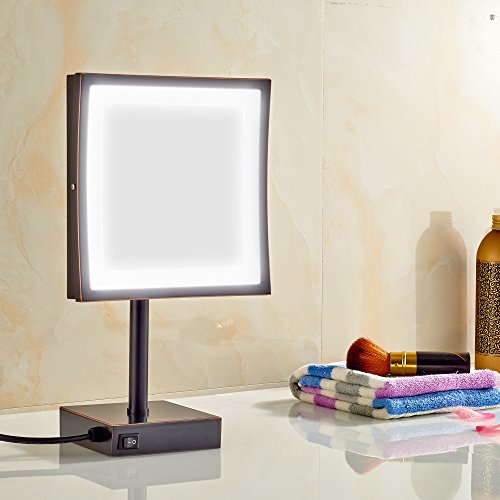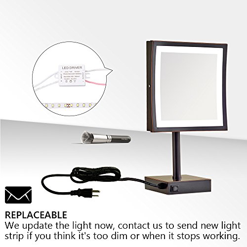 GURUN Square Lighted Vanity Mirror with 3x Magnification,8.5 inch (Oil-Rubbed bronze)