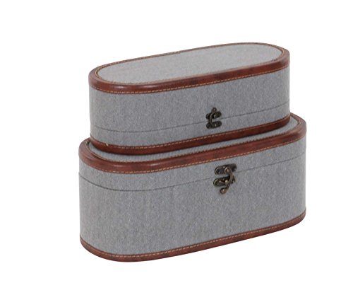 Deco 79 54067 Gray Fabric Covered Wooden Oval Boxes (Set of 2), Gray/Brown/Black