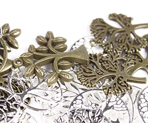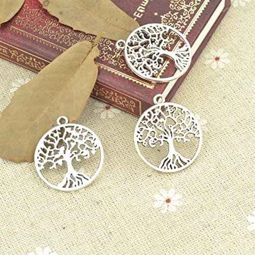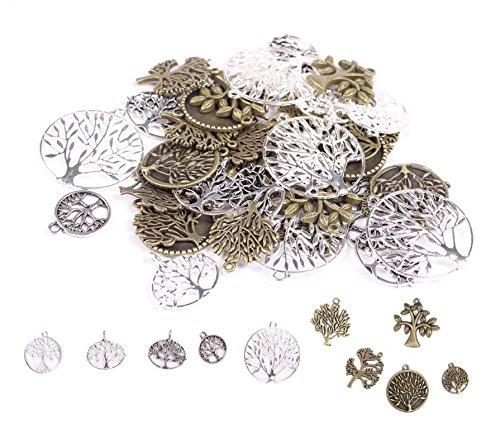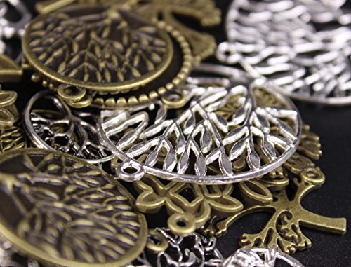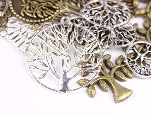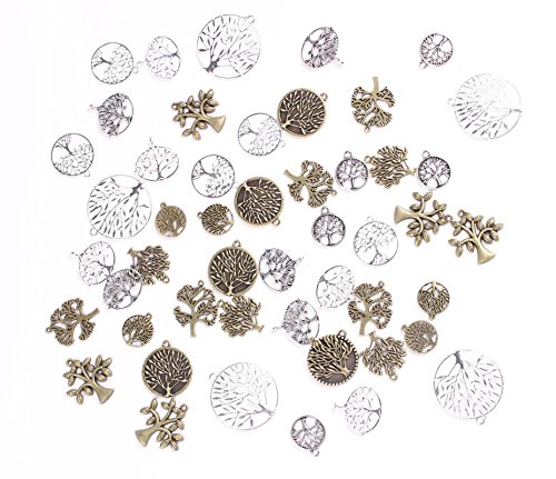 BIHRTC Pack of 50 Mixed Size DIY Alloy Tree of Life Charms Pendents Jewelry Findings for Making Anklet Bracelet Necklace