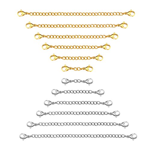 Sungrace Stainless Steel Necklace Bracelet Extender Chain Set (Silver and Golden,12 Pcs)