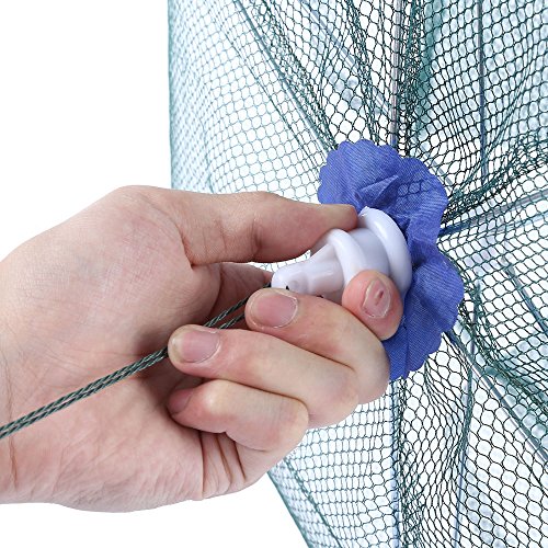 -. Feature : - Suitable for catching shrimp, crab, crawfish, loach, etc. / - Nylon and steel material, light, portable and wear resistant / - Foldable and retractable, easy to carry / - Zipper design, easy to catch fish Color Light Green