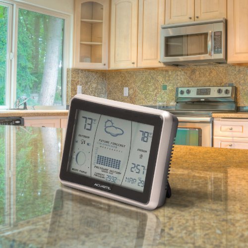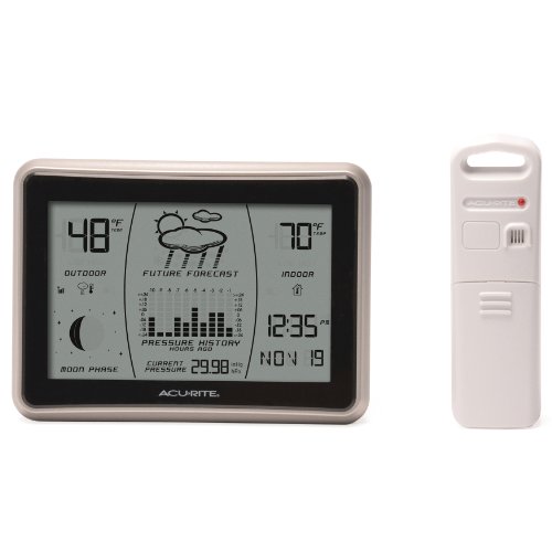 -. Binding : Kitchen -. Brand : AcuRite -. Color : Gray with Silver Bezel -. EAN : 0072397006217 -. Feature : Patented Self-Calibrating Forecasting pulls data from a sensor in your backyard to give you the most accurate forecast for your exact location / Easy-to-read LCD display / Intelli-Time self-setting clock and calendar adjusts for DST / Durable, weather resistant construction / Strong signal penetration (enhanced 433 MHz) -. Label : AcuRite -. Manufacturer : AcuRite -. Model : 621 -. MPN : 00621A1 -. NumberOfItems : 1 -. PackageQuantity : 1 -. PartNumber : 00621A1 -. ProductGroup : Home -. ProductTypeName : HOME -. Publisher : AcuRite -. Size : 1.5" W x 5" H x 1" D -. Studio : AcuRite -. Title : AcuRite 00621 Wireless Weather Forecaster with Intelli-Time -. UPC : 072397006217 -. Warranty : 1-Year warranty