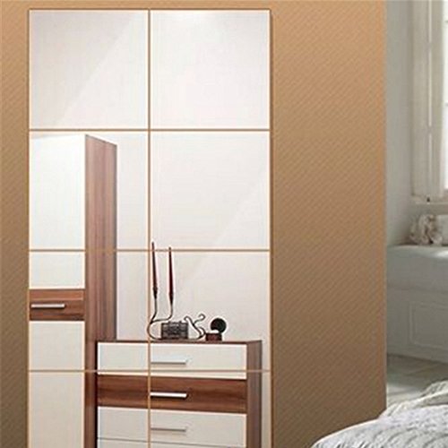 10 x 10 cm Acrylic Mirror Wall Stickers, YTAT DIY Decor Adhesive Square Mirrors Tiles, Wall Mirror Stickers for Wall Decor, Thickness 0.2cm, 9 Pcs (Silver) (2mm, Silver)
