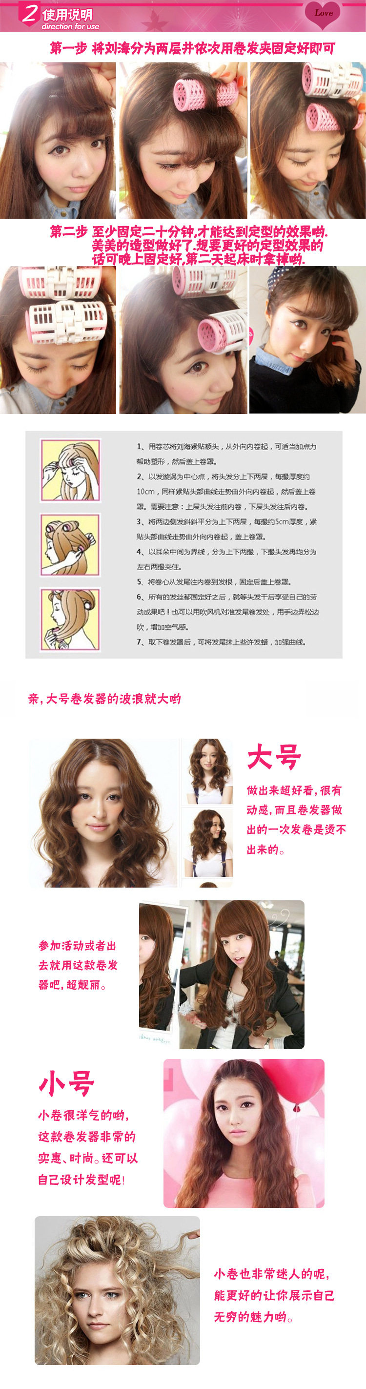 第二步,卷发夹至少固定20分钟,才能达到定型的效果哦~(Ps:要想达到更好效果可以晚上固定好,第二天清晨取掉)