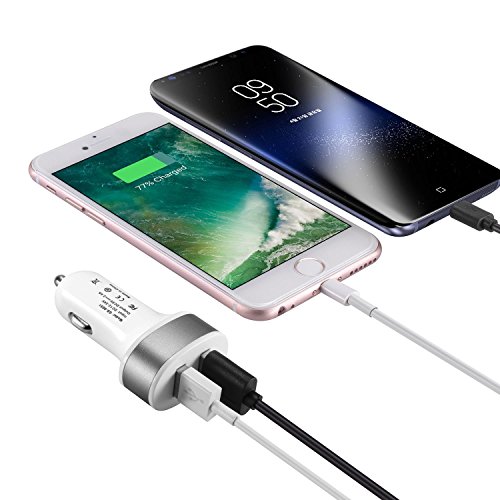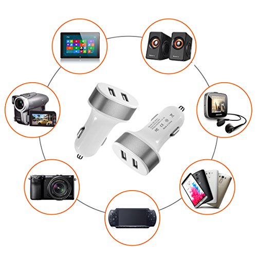 - Car Charger: Works with all USB-powered devices including iOS and Android smartphones and tablets. Compatible with all 12-24V car sockets (Dual USB charging ports output a shared 2.1 amps, it provide the over-current, over-heating, over-voltage, and short-circuit protection for fast and safe charging.).