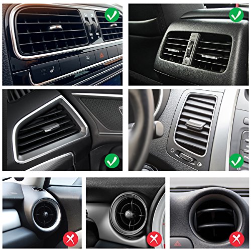 - Car Mount Phone Holder: Air vent car mount phone holder is a compact and very useful mounting solution that fits easily into any vent in most vehicles. Please kindly note: this car vent mount cannot work on those cars with arc-shaped, retraction type or non-intensive air vents.