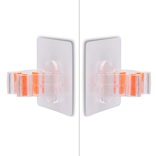 Transparent Mop and Broom Holder, Reusable Adhesive Dual-Purpose Wall Mounted Mop Broom Organizer for Kitchen Bathroom Storage Room Tile wall Heavy Duty Waterproof and Oilproof