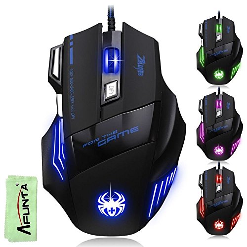 [New Version] AFUNTA Super Big 7200 DPI Gaming Athletics Wired USB Game Mouse 7 Button With Colorful Breathing Lights Support Windows IOS Mac System