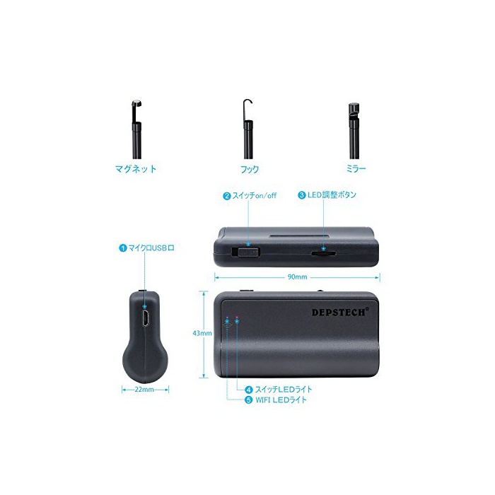 원본상품명: DEPSTECH WiFi接 エンドスコプ 視鏡 200万素 8.5MMレンズ イヤレスボアスコプ ファイバスコプ 高輝度6個LEDライト 防水IP67 査カメラ Android、IO